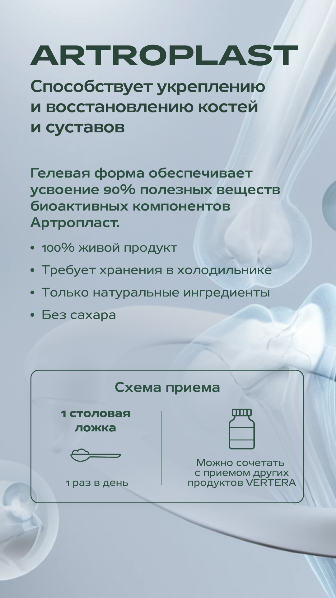 Гель "Artroplast" снабжает организм всеми витаминами, микро- и макроэлементами, которые нужны для нормальной работы суставов и поддержания прочности костной ткани. Продукт богат органическим йодом, необходимым щитовидной железе для регуляции обменных процессов.